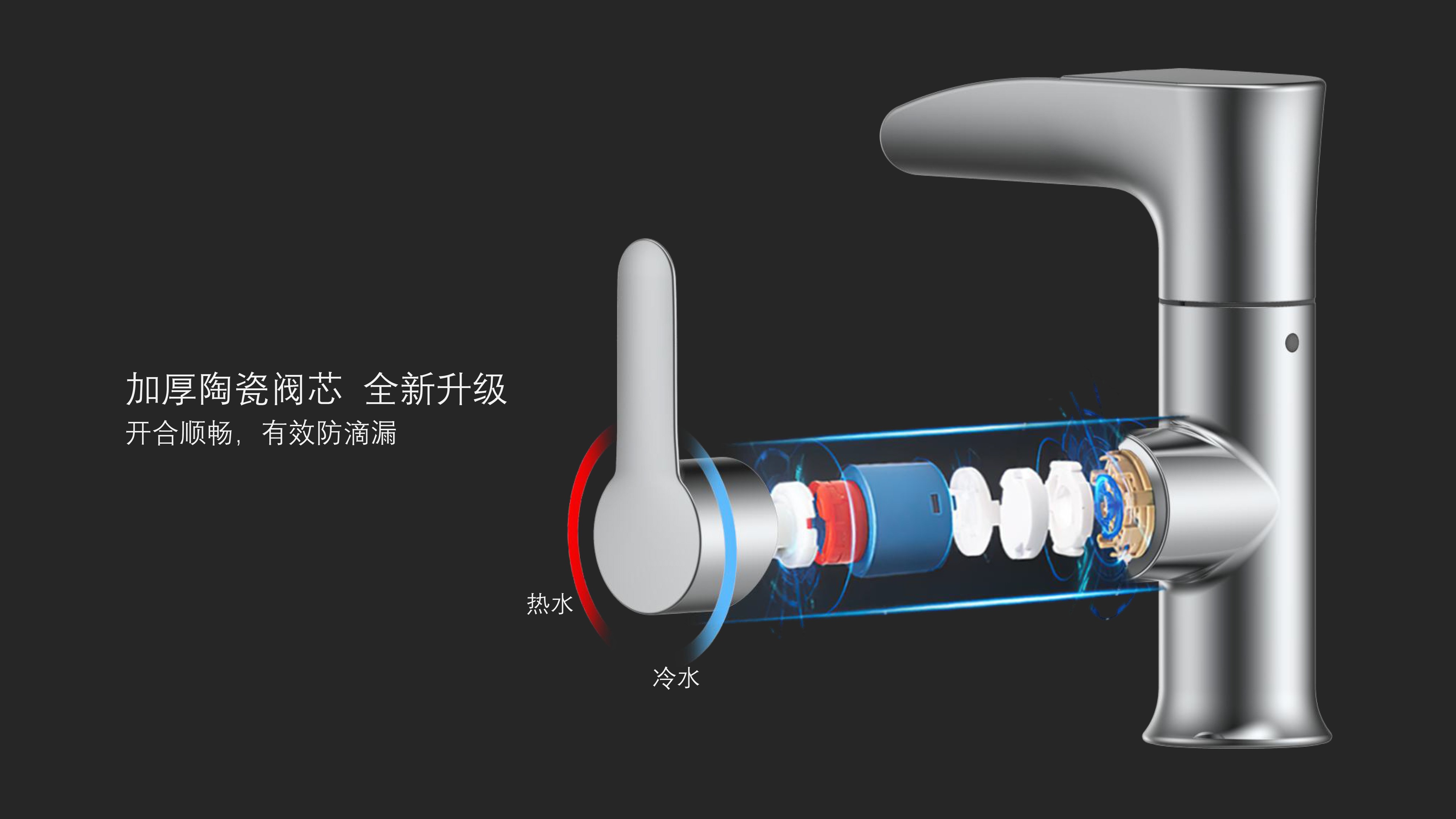 CUPC/ WaterSense/ NSF61/ AB1953(NSF372)認(rèn)證;簡約時(shí)尚設(shè)計(jì);加厚陶瓷閥芯,開合順暢,有效防滴漏;LED三種顏色-涼水呈藍(lán)色、溫水呈綠色、熱水呈紅色